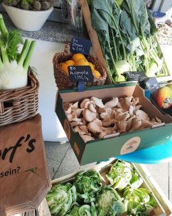 mit ganz viel Bio: frische demeter Backwaren, gesundes Obst und Gemüse, Milchprodukte, Käse,Wurst, Eier, Aufstriche, Müslis,Süßes und Herzhaftes, Kaffee, Kuchen,Torten und vielem mehr.