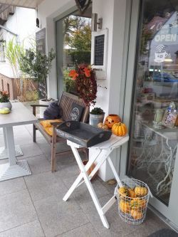 Wird es auf der Terrasse draussen nun doch etwas zu ungemütlich, heizen wir uns drinnen den Kamin an und machen es uns mit Torte und Kaffee gemütlich...oder Brownie mit Walnusskaramell und Heißer Schokolade oder Hefe-Dinkel-Pflaumenkuchen mit Haselnusszimtstreusel oder mit Weihnachtscookie und Hygge Punsch und vieles mehr ...Wir freuen uns auf euch !